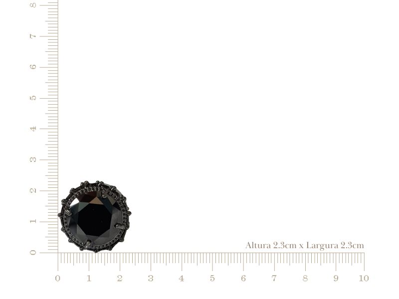 Anel 17 Redondo Multifacetado Ônix Cravejado de Zircônias Ovais Ônix em Banho de Ródio Negro