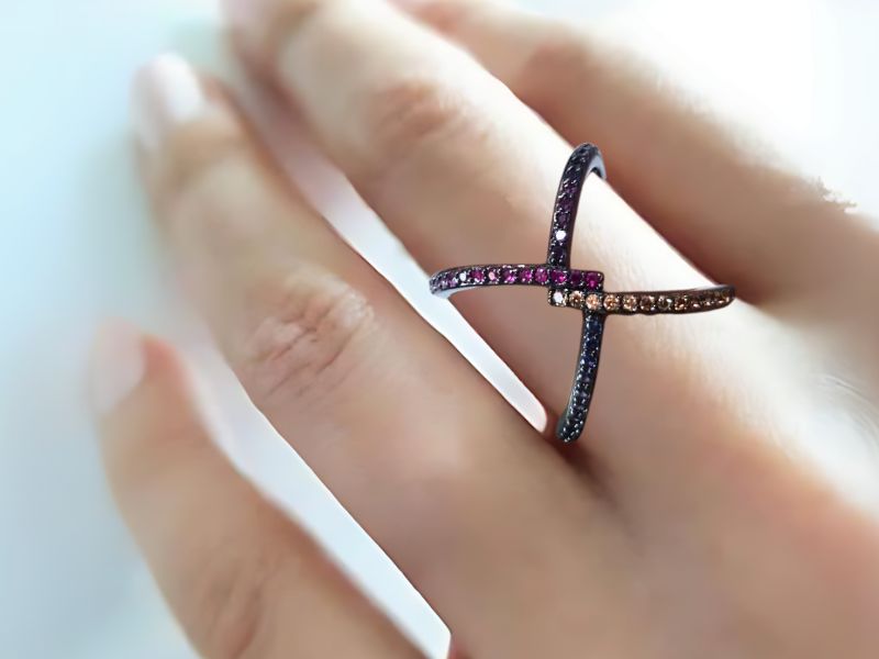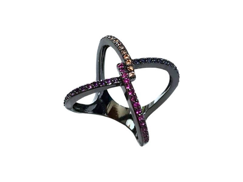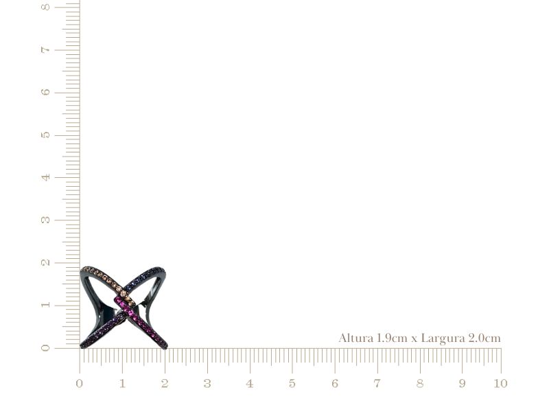 Cód. 005155/075 – Anel X Cravejado de Zircônias Coloridas em Banho de Ródio Negro