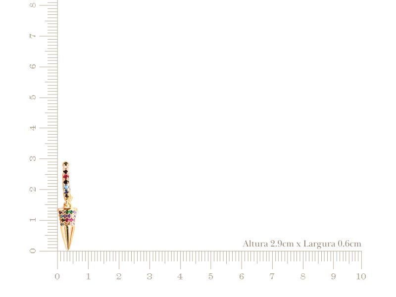 Cód. 002916/030 – Brinco Argola com Pingente de Cone Cravejados de Zircônias Coloridas em Banho de Ouro Amarelo