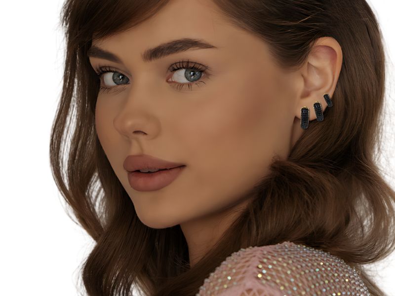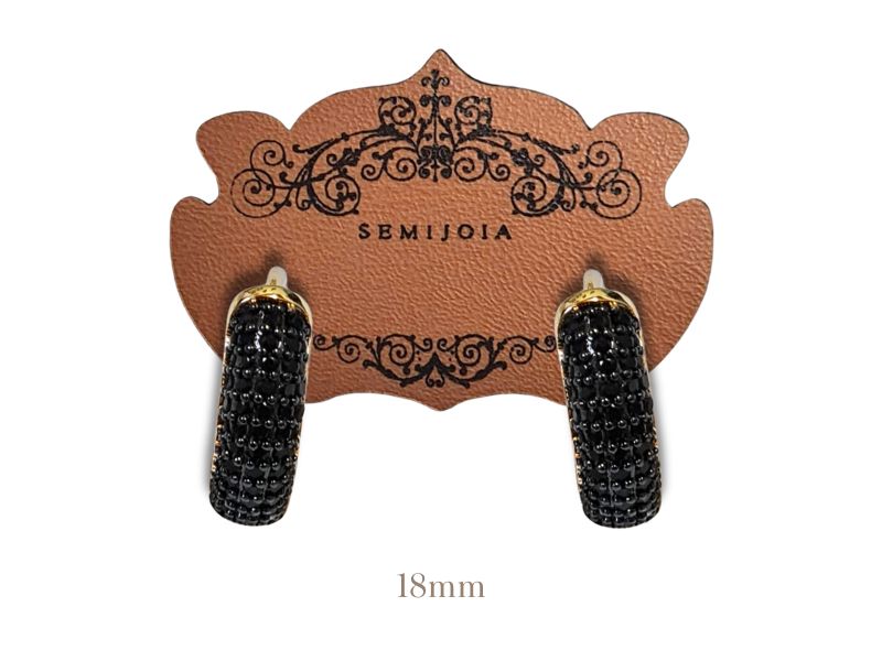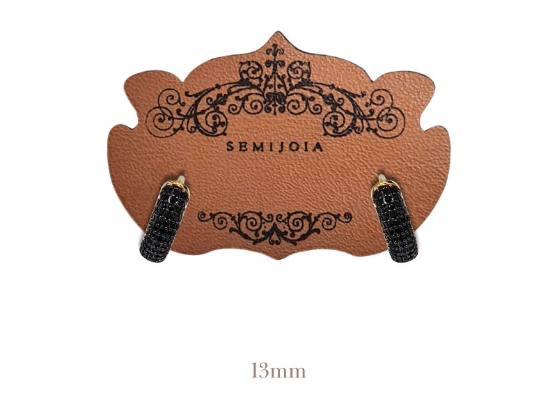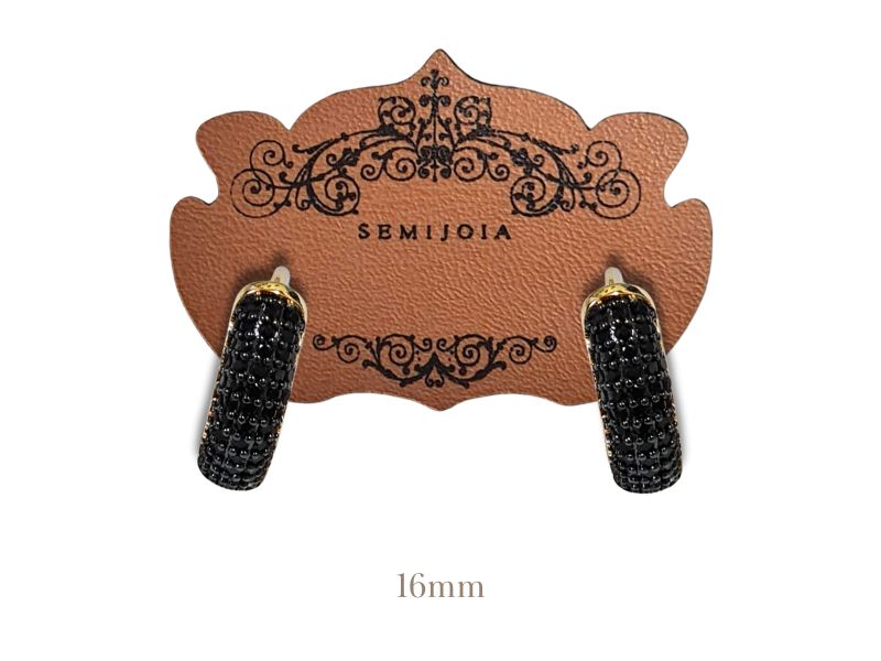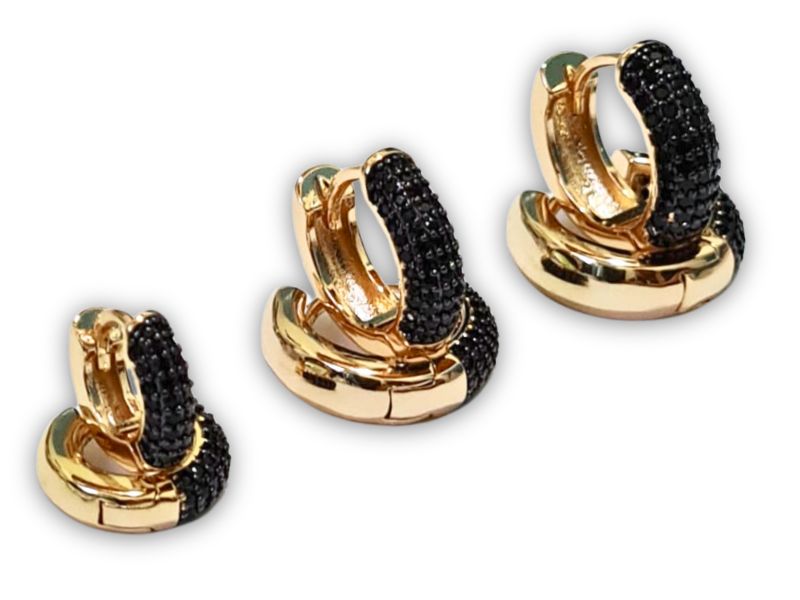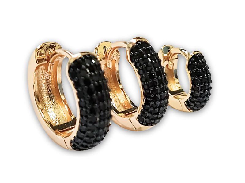Cód. 005254/030 – Brinco Argola Cravejada de Zircônias Ônix em Banho de Ouro Amarelo Rodinado com Ródio Negro