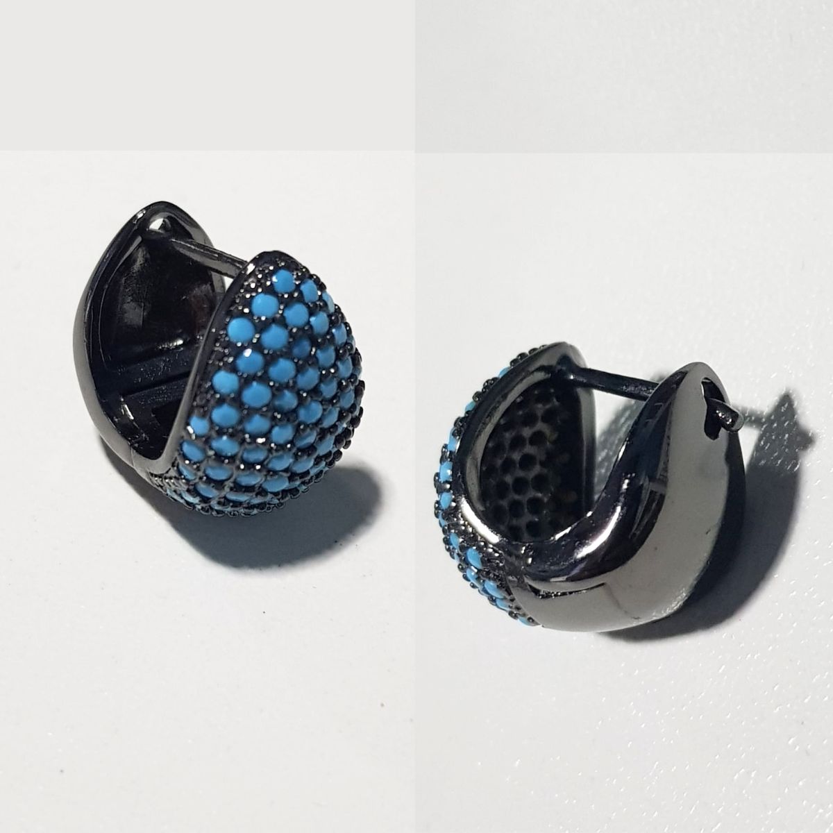Cód. 004812/075 – Brinco Argola Gota Cravação Pavê de Nano Azul Em Ródio Negro