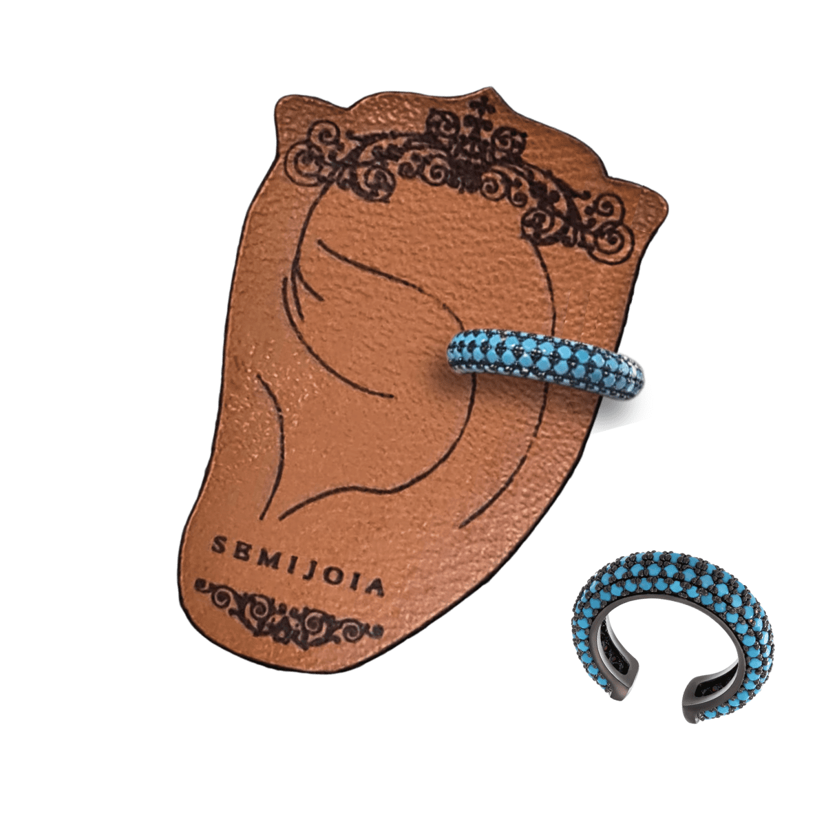 Cód. 005839/030 – Piercing Fake Unilateral Cravação Pavê de Nano Azul Em Ródio Negro