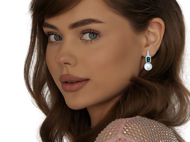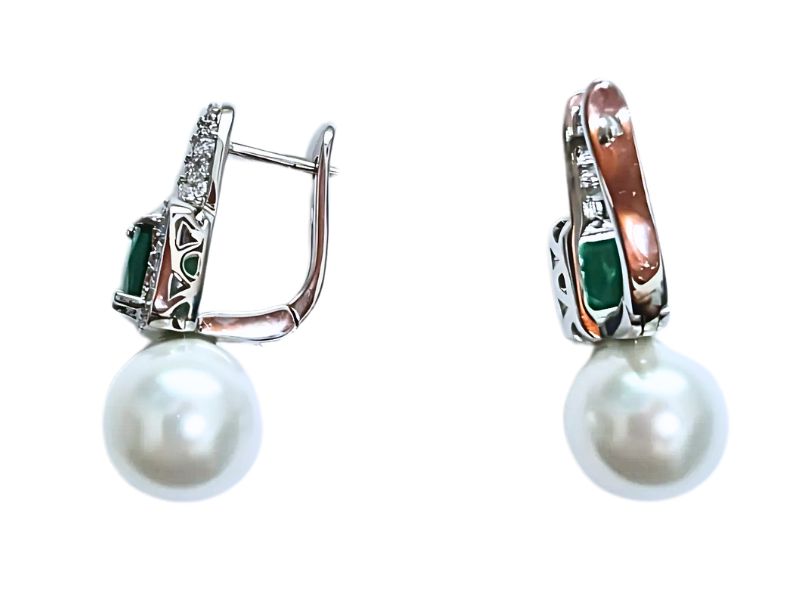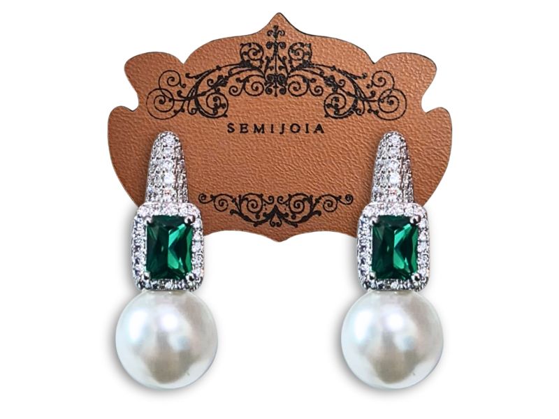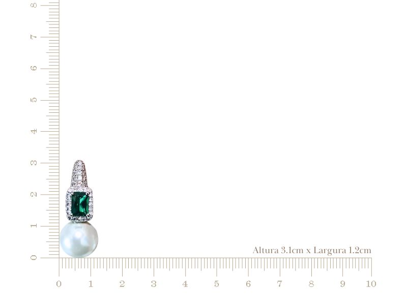 Cód. 005270/030 – Brinco Argola Lapidação Carré Esmeralda Cravejada de Zircônias Transparentes com Pérola de 12mm Branca em Banho de Prata 925