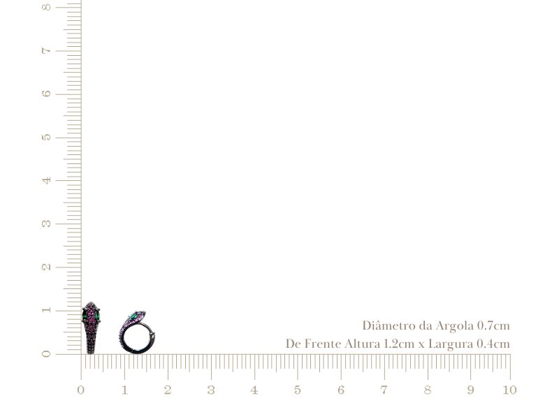 Cód. 003060/075 – Brinco Argola Snake Olhos Esmeralda Microcravejada de Zircônias Rubi Pink em Banho de Ródio Negro