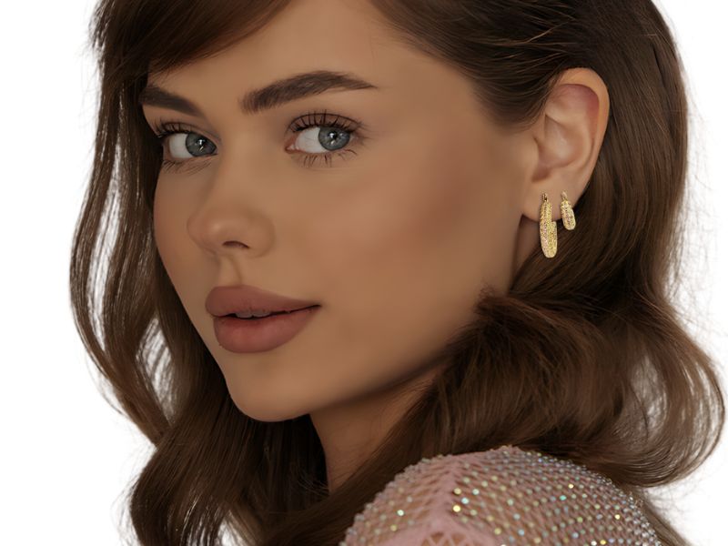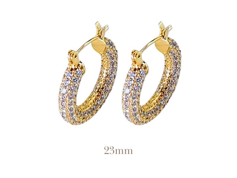 Cód. 005149/030 – Brinco Argola Cravejada de Zircônias Transparentes com Fecho Cancela e Trava em Banho de Ouro Amarelo