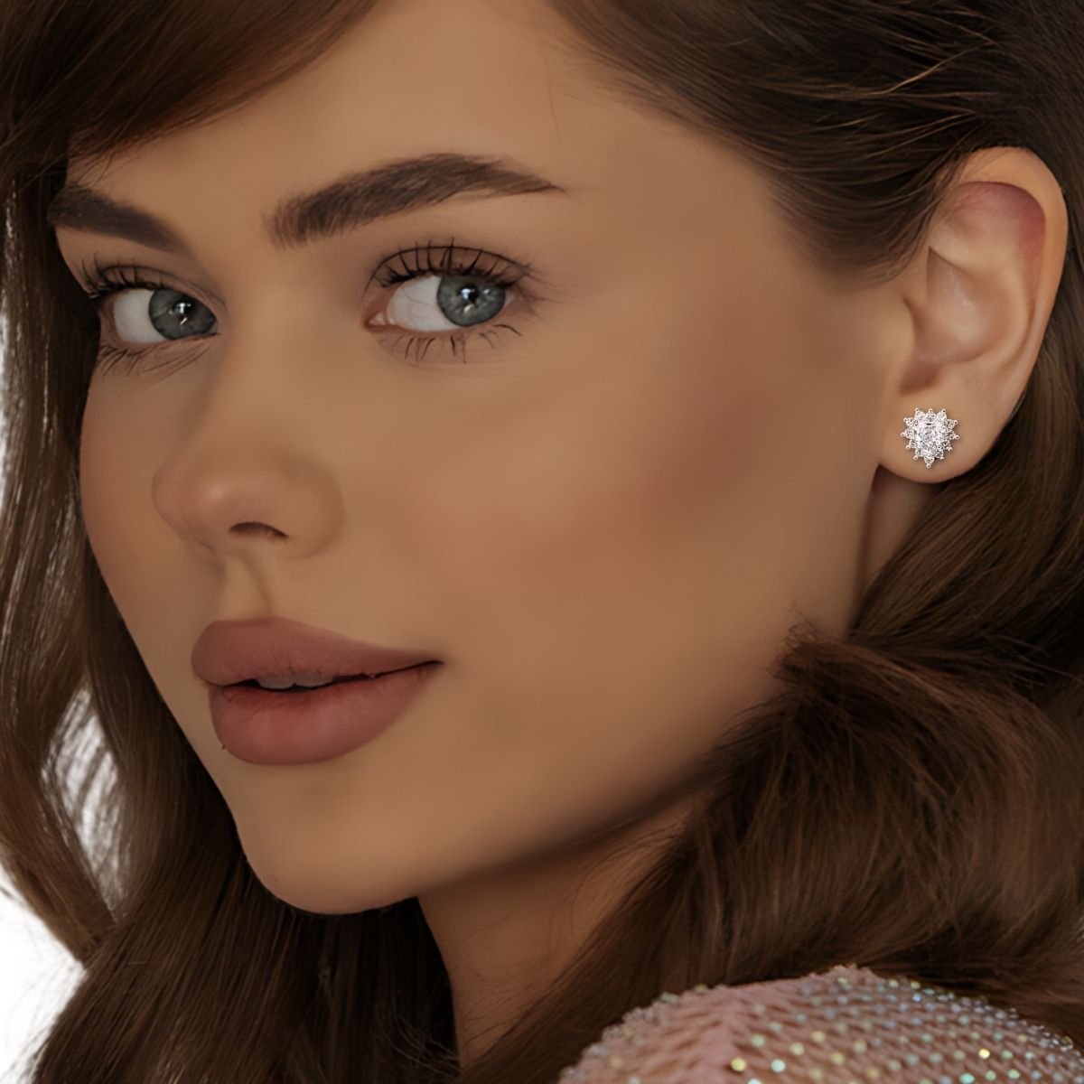 Brinco Coração de Zircônia Cristal Cravejado de Zircônias Cristal em Banho de Prata 925