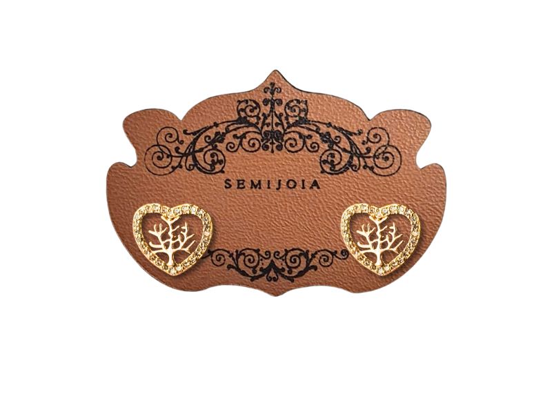 Cód. 004626/042 – Brinco Coração Vazado Cravejado de Zircônias Transparentes e Árvore da Vida em Banho de Ouro Amarelo