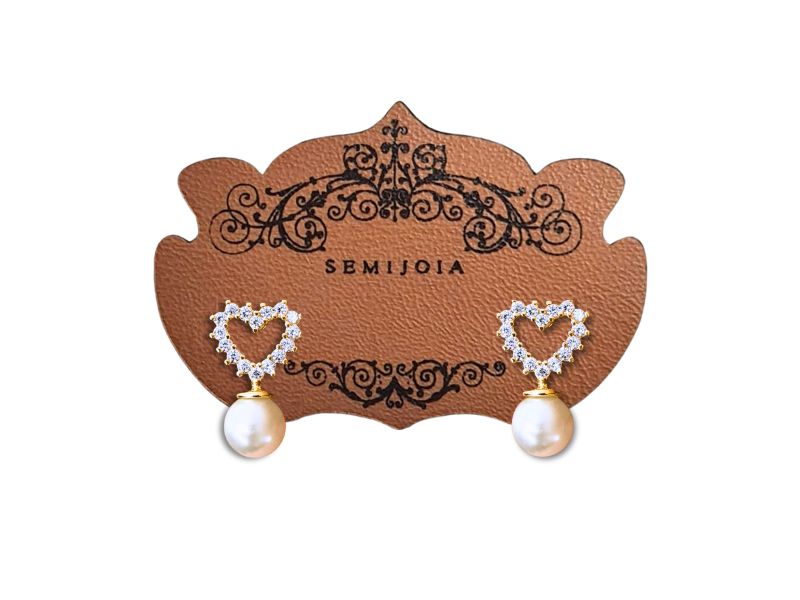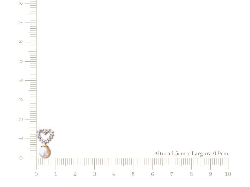 Cód. 004127/004 – Brinco Coração Vazado Cravejado de Zircônias Transparentes e Pérola 6mm em Banho de Ouro Amarelo