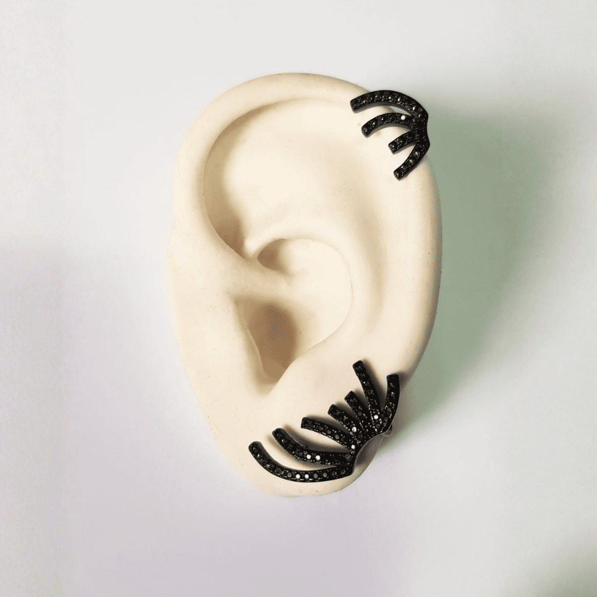 Cód. 003591/075 – Brinco Ear Cuff Fios Microcravejados Onix em Banho de Ródio Negro