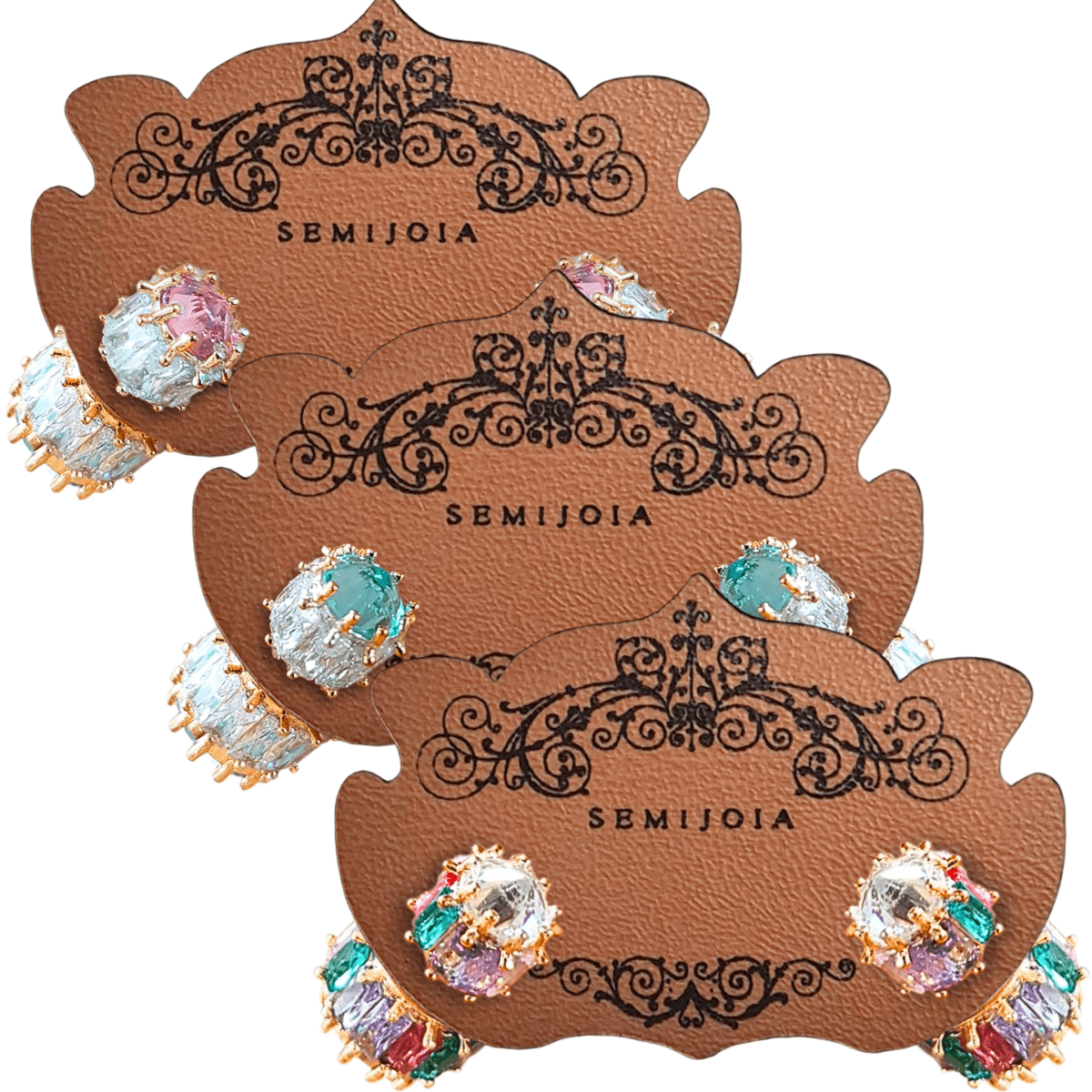 Semijoias são réplicas de jóias e, por isso, utilizamos nomes e tons de pedra preciosas como referência para a cor das zircônias.