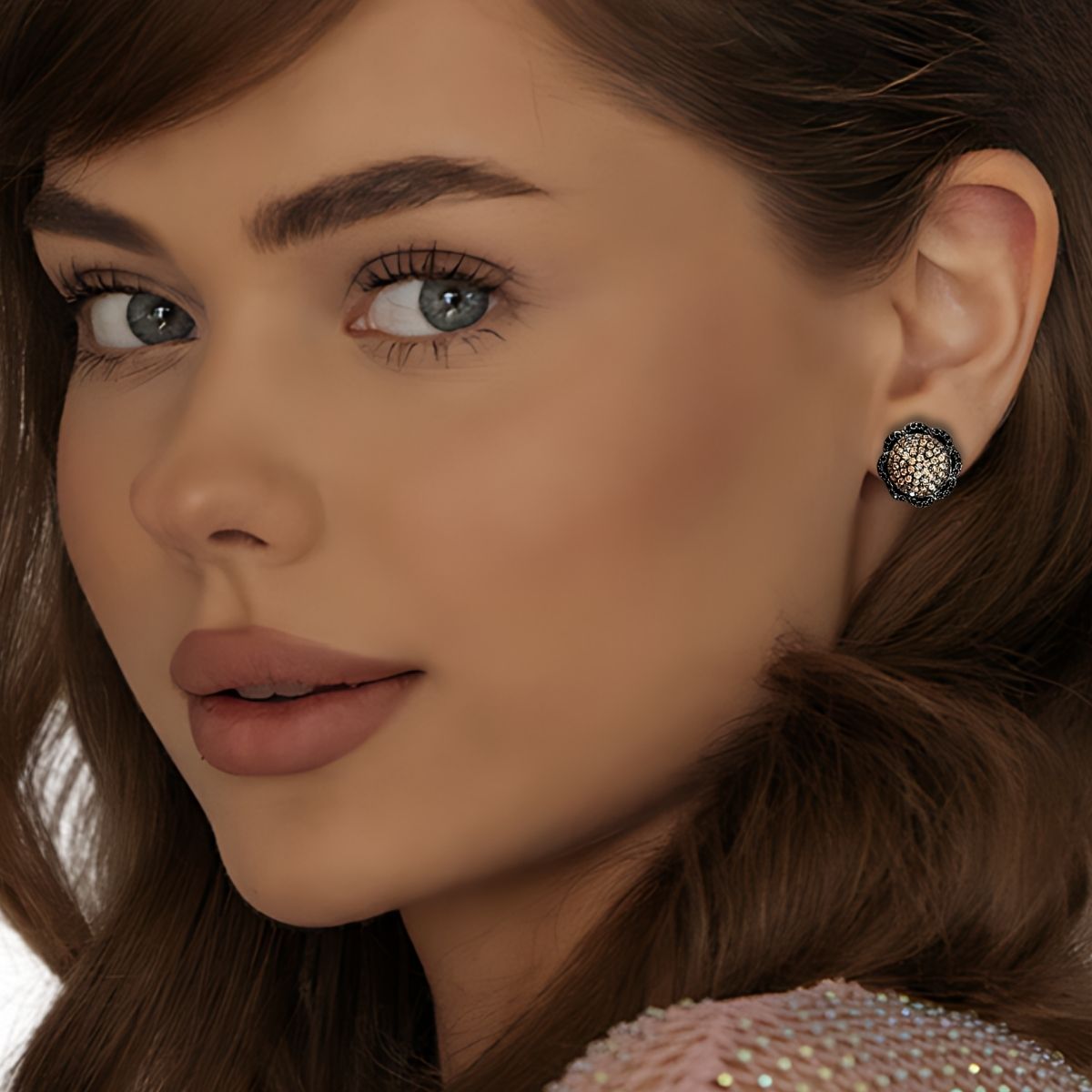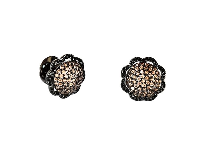 Cód. 005123/075 – Brinco Flor Cravejado de Zircônias Morganita e Ônix em Banho de Ródio Negro