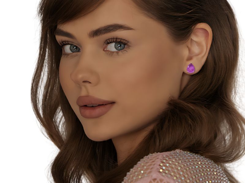Cód. 003553/049 – Brinco Gota Turmalina Fúcsia Premium em Banho de Ródio Branco