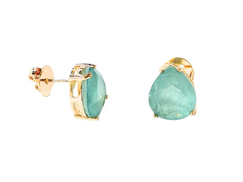 Cód. 004703/042 – Brinco Gota Esmeralda Colombiana Fusion Premium em Banho de Ouro 24k + 18K