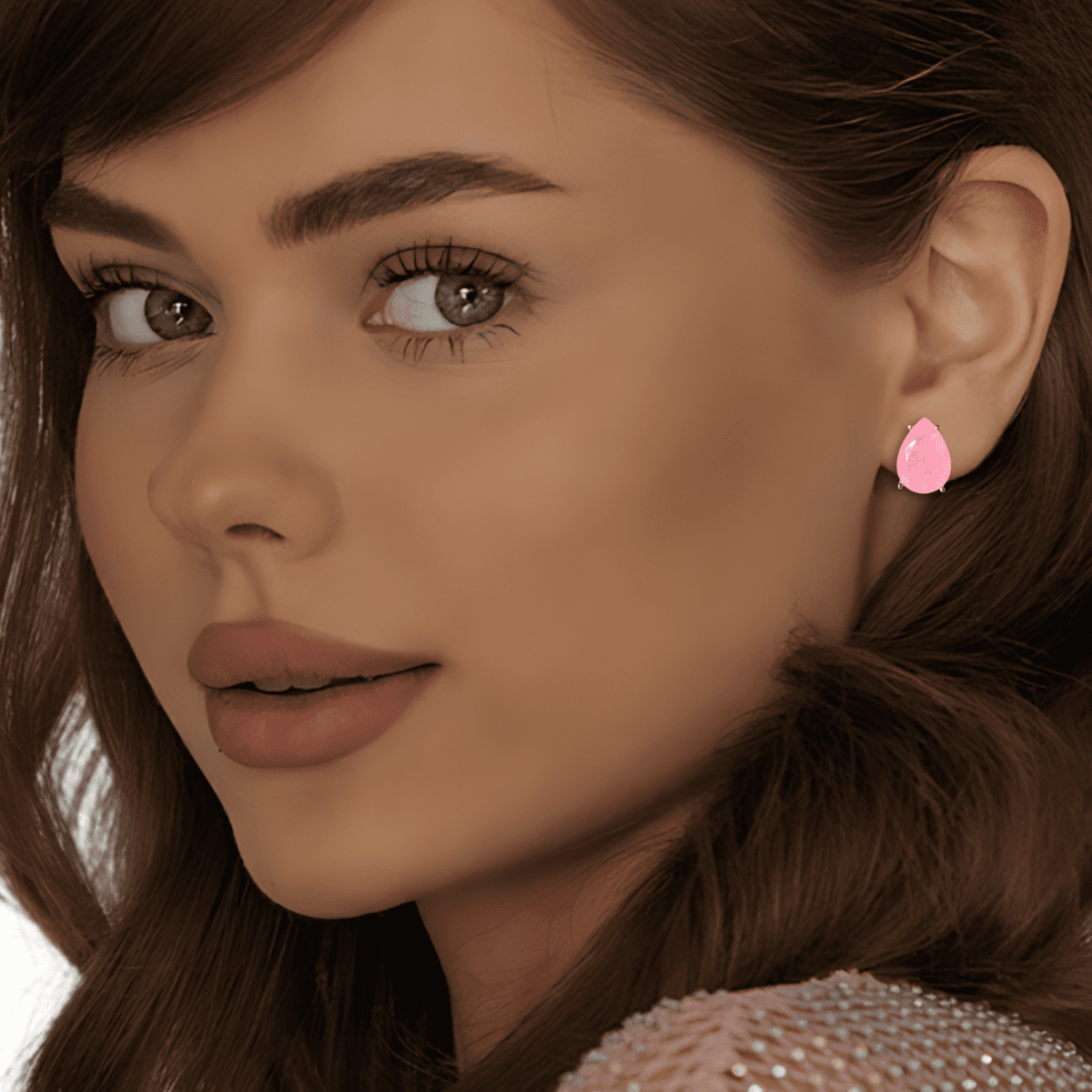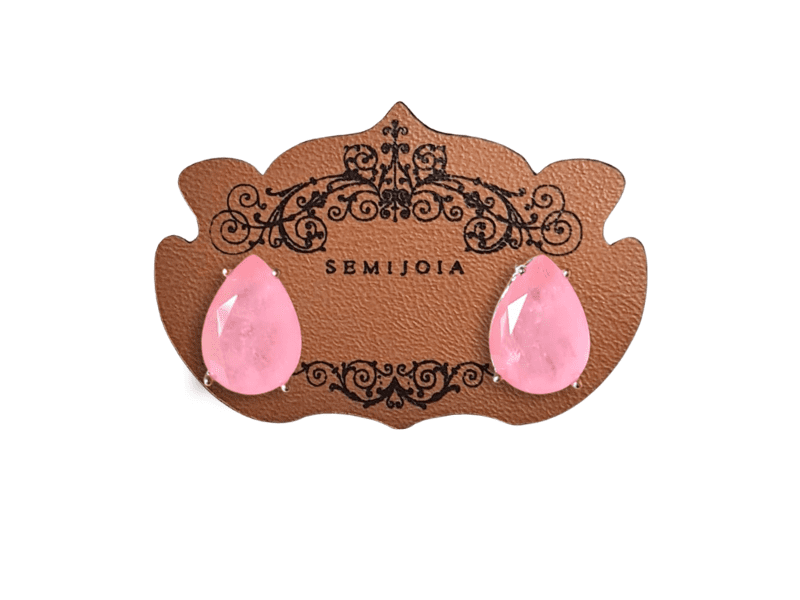 Cód. 005541/013 – Brinco Gota Turmalina Rosa Light Premium em Banho de Prata 925