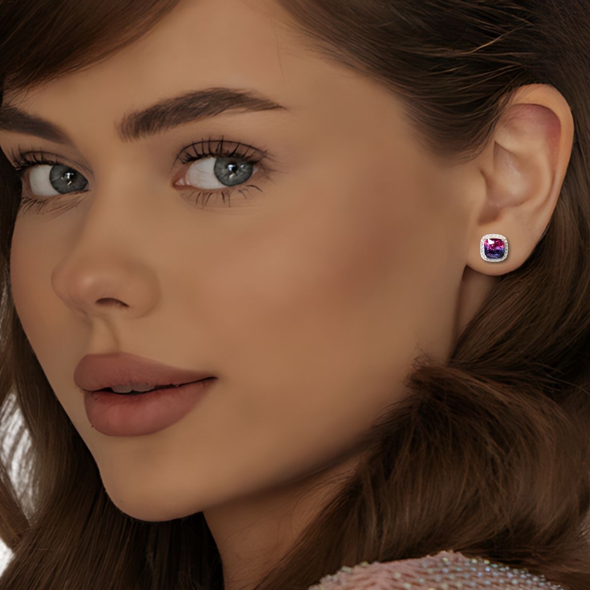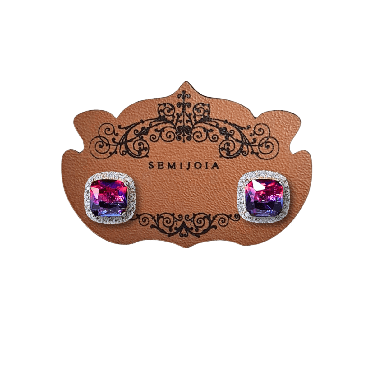 Cód. 005604/030 – Brinco Lapidação Carré Cristal Rainbow Pink e Azul Safira Microcravejado de Zircônias Transparentes em Banho de Prata 925