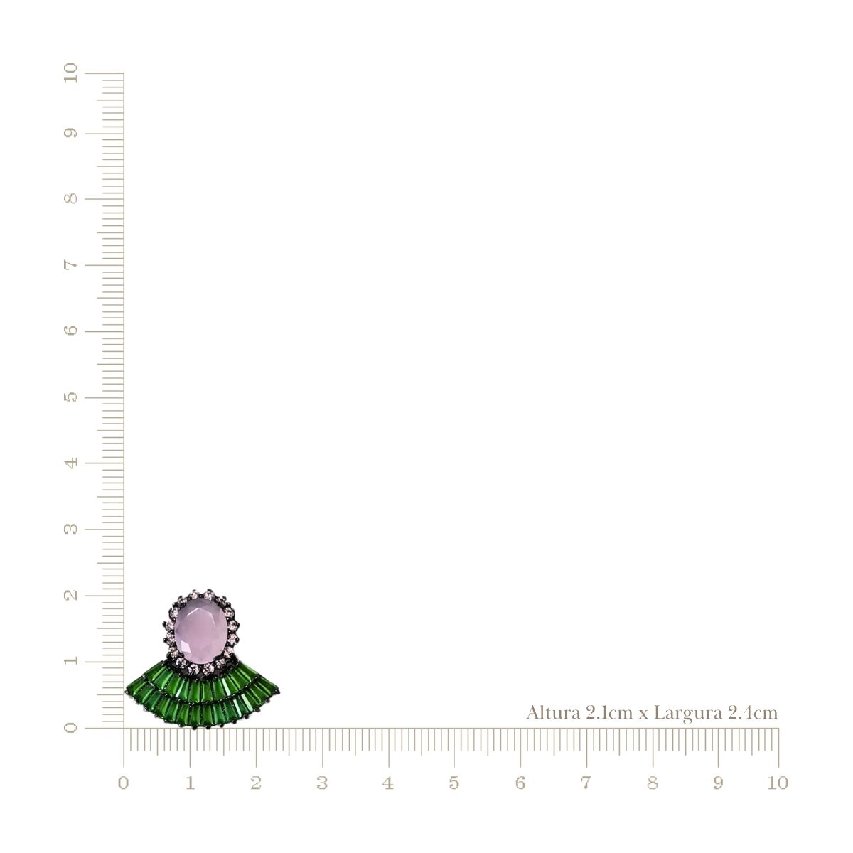 Cód. 005243/075 – Brinco Leque Oval de Quartzo Rosa Cravejado de Zircônias Cristal e Baguetes Esmeralda Leitosa em Banho de Ródio Negro
