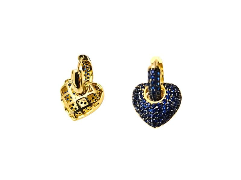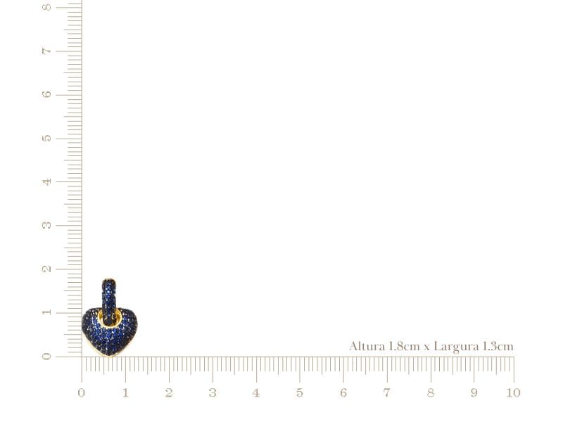 Cód. 005532/030 – Brinco Mini Argola e Pingente de Coração Cravejados de Zircônias Safira Azul em Banho de Ouro 18K Rodinado com Ródio Negro