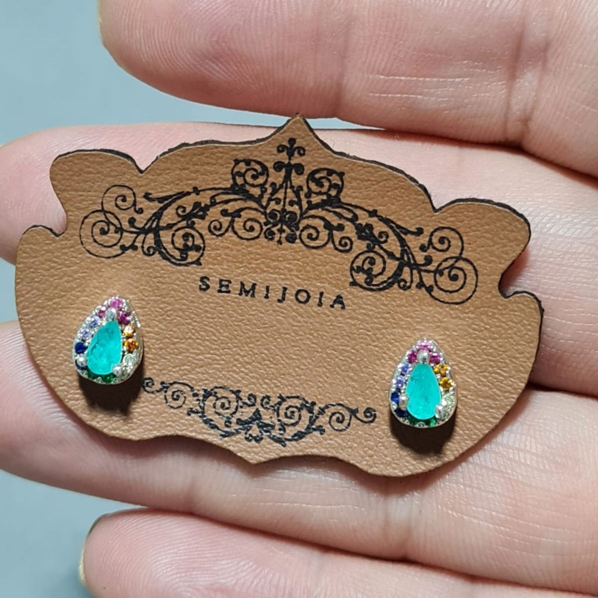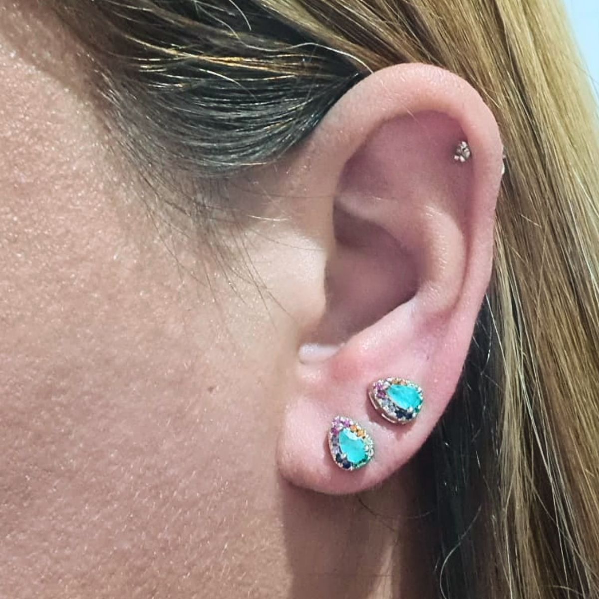 Cód. 005041/030 – Brinco Mini Gota Turmalina Paraíba Fusion Premium Cravejado de Zircônias Coloridas em Banho de Prata 925