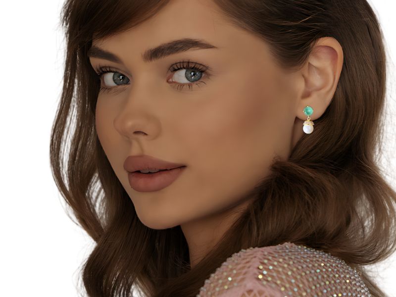 Cód. 003450/007 – Brinco Redondo Turmalina Paraíba Fusion Premium com Pingente de Pérola Shell Cravejado de Zircônias Transparentes em Banho de Ouro Amarelo