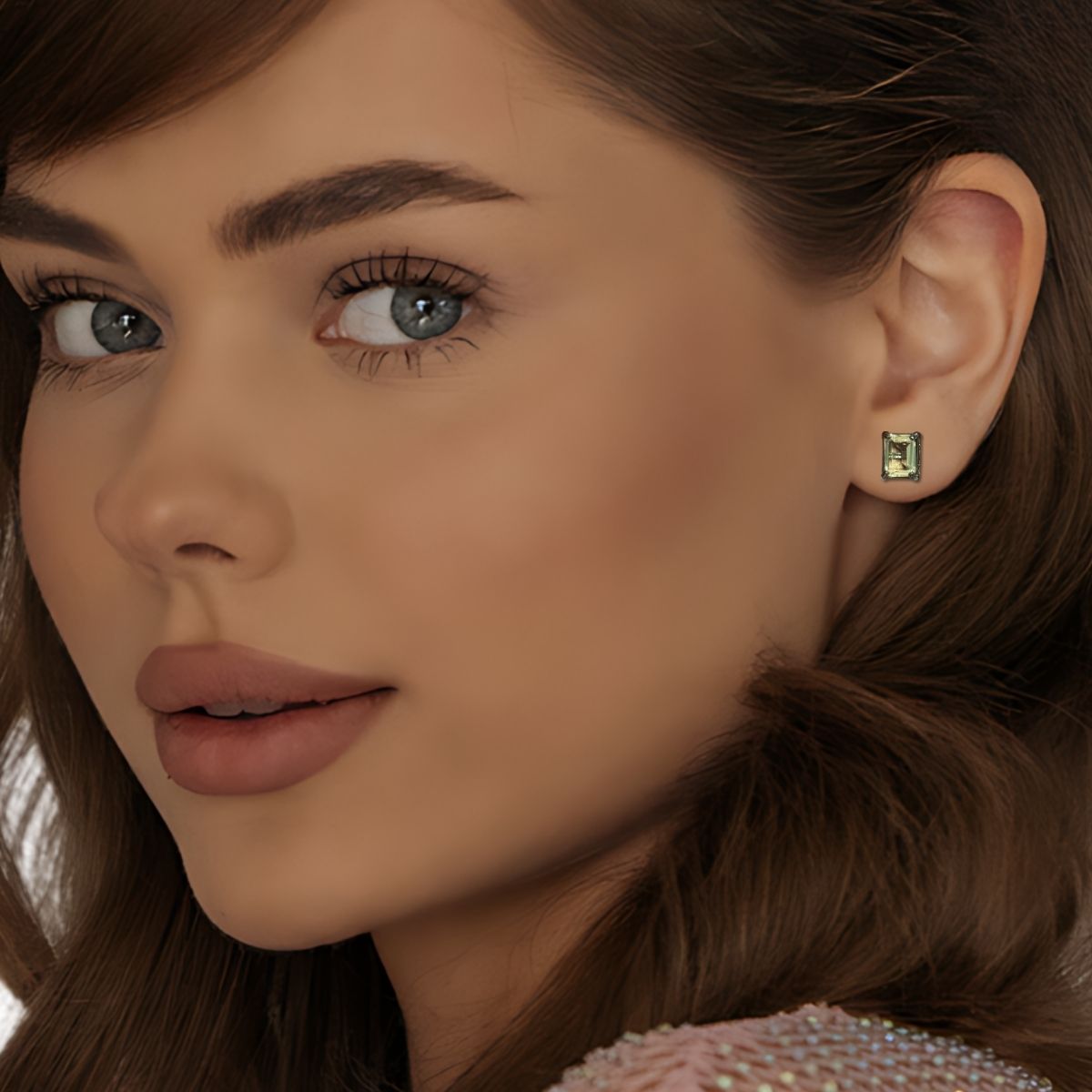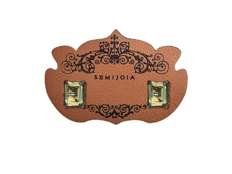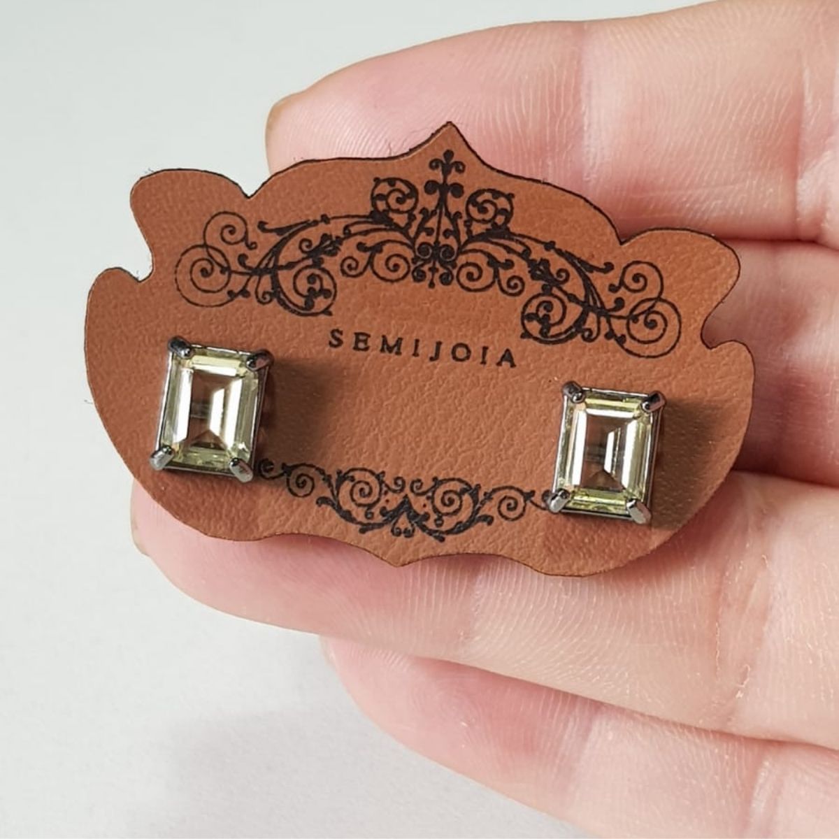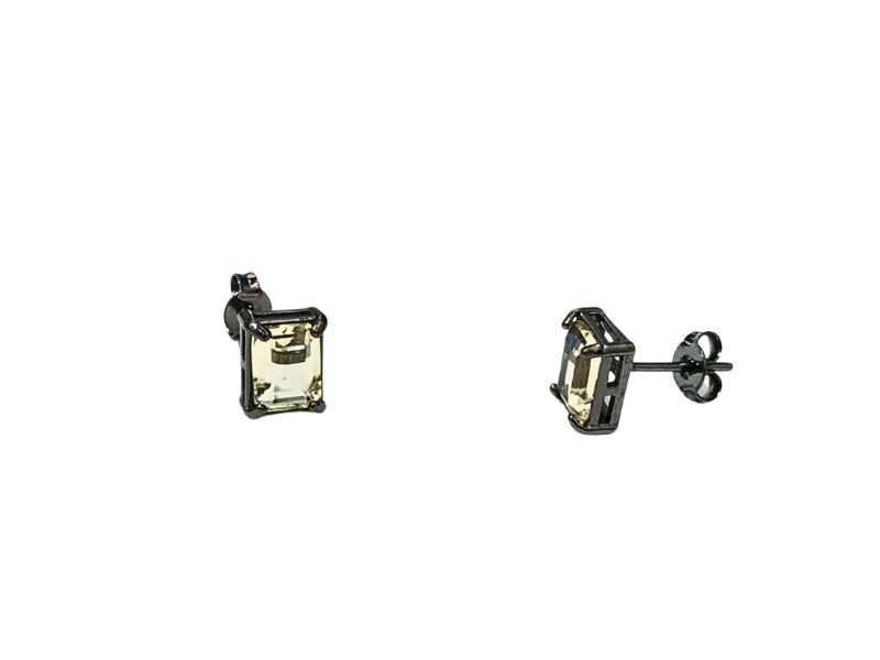 Cód. 000133/002 – Brinco Retângulo de Cristal Citrino Amarelo em Banho de Ródio Negro