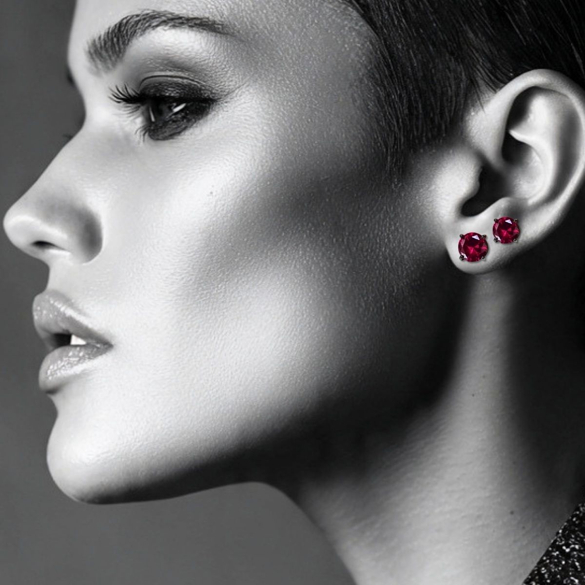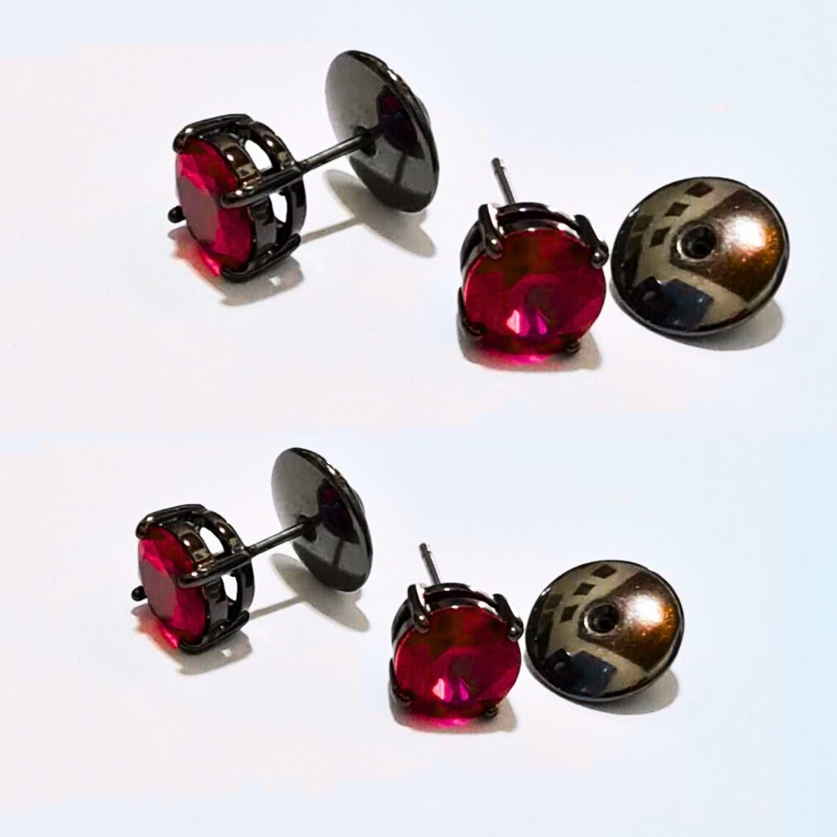 Brinco Solitário Rubi Vermelho em Banho de Ródio Negro