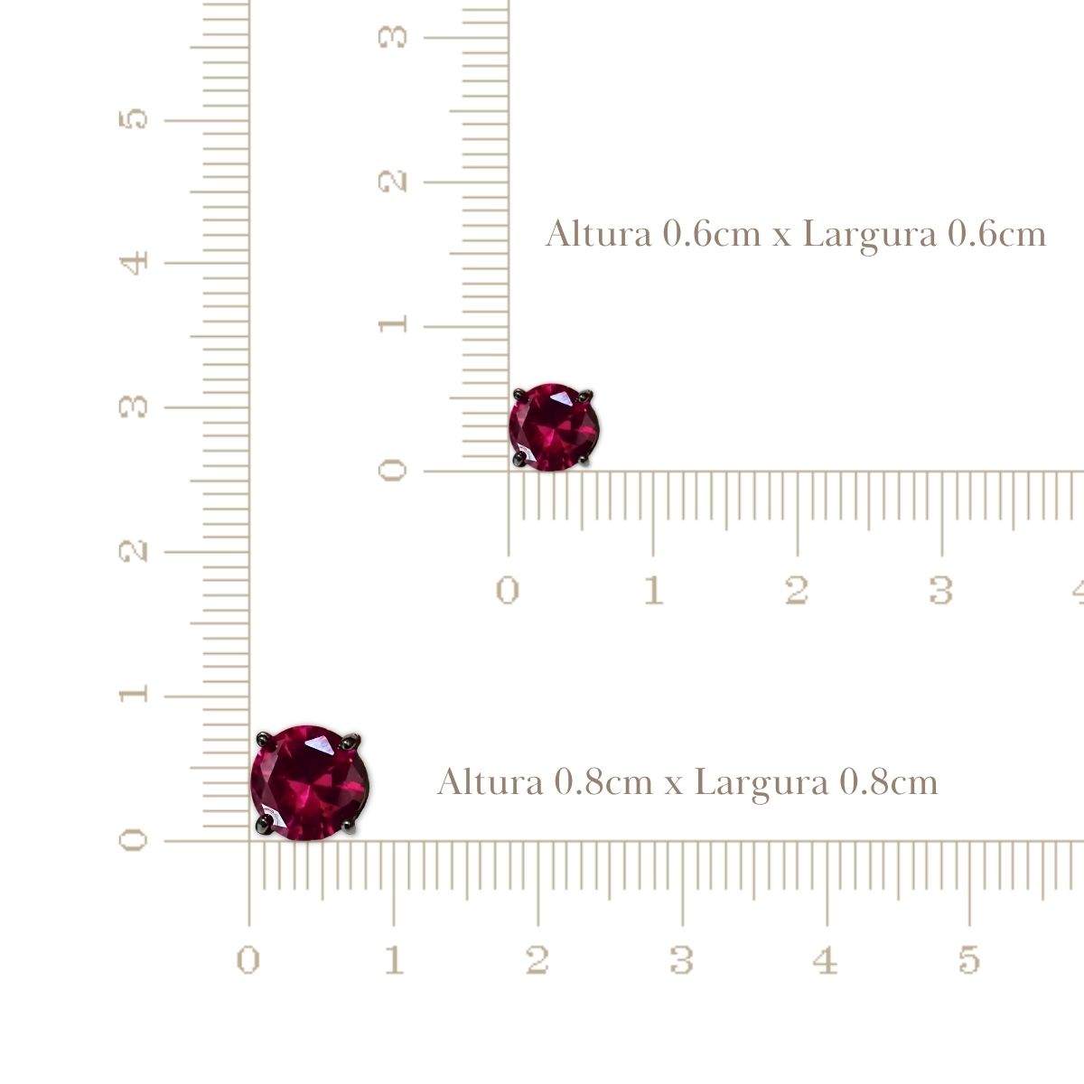 Cód. 005910/075 – Brinco Solitário Rubi Vermelho em Banho de Ródio Negro – Tamanho: 0.6cm Altura x 0.6cm Largura