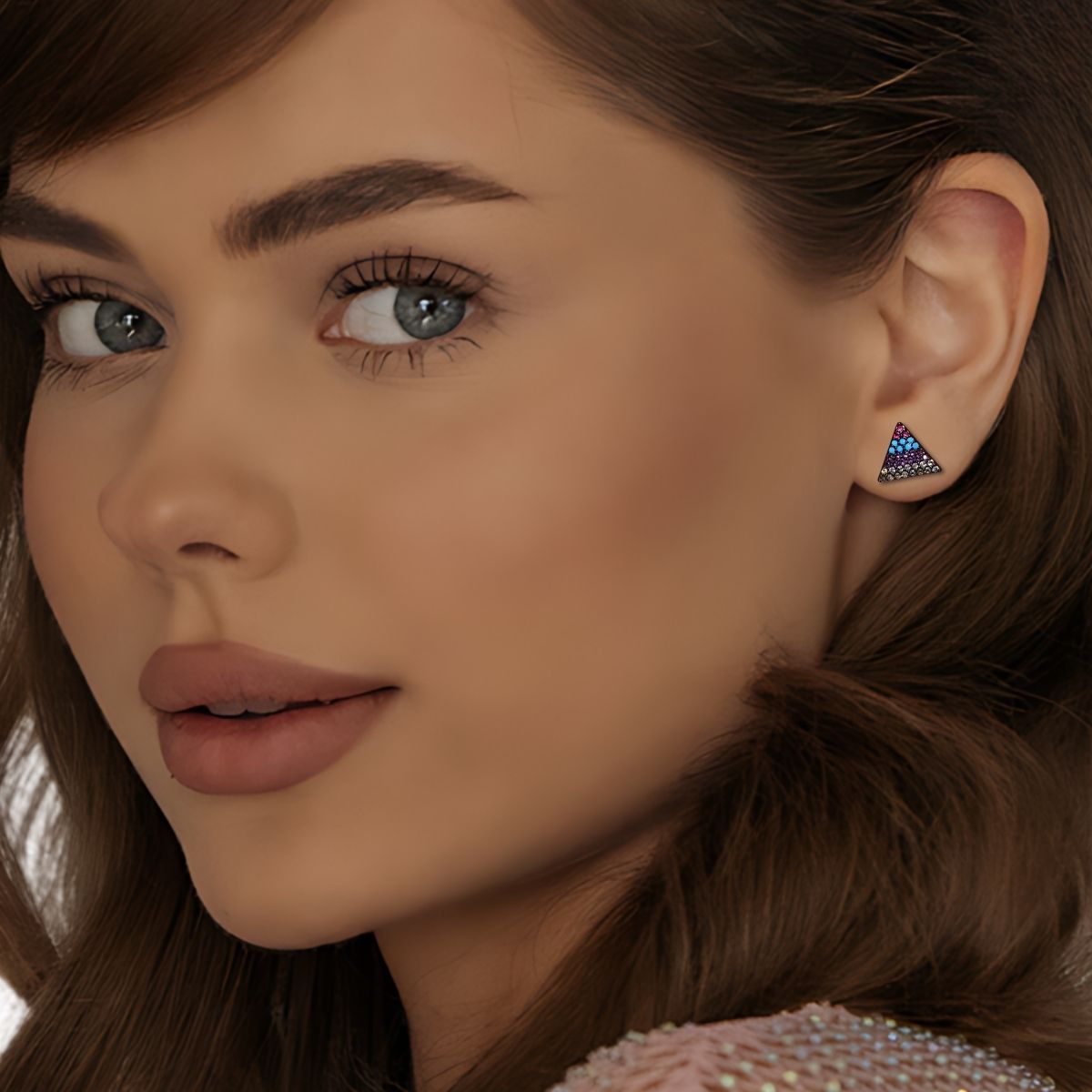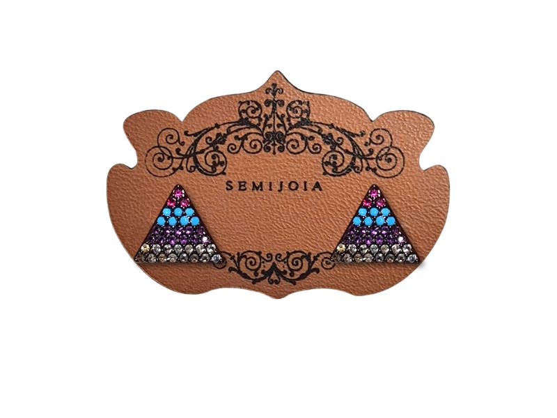 Cód. 005154/075 – Brinco Triângulo Cravejado de Listras de Zircônias Coloridas em Banho de Ródio Negro