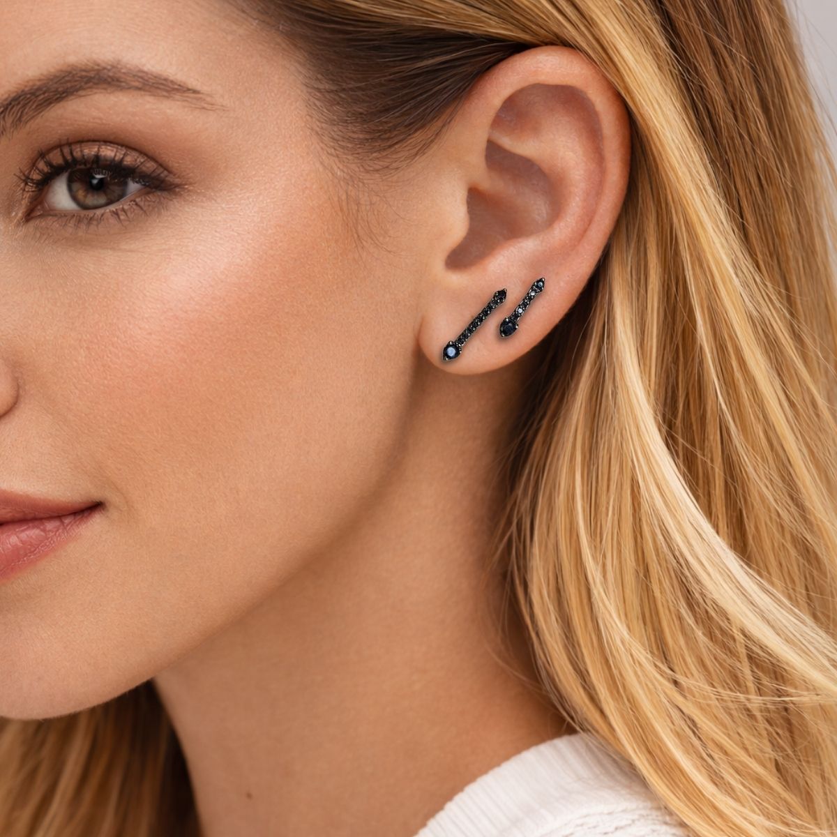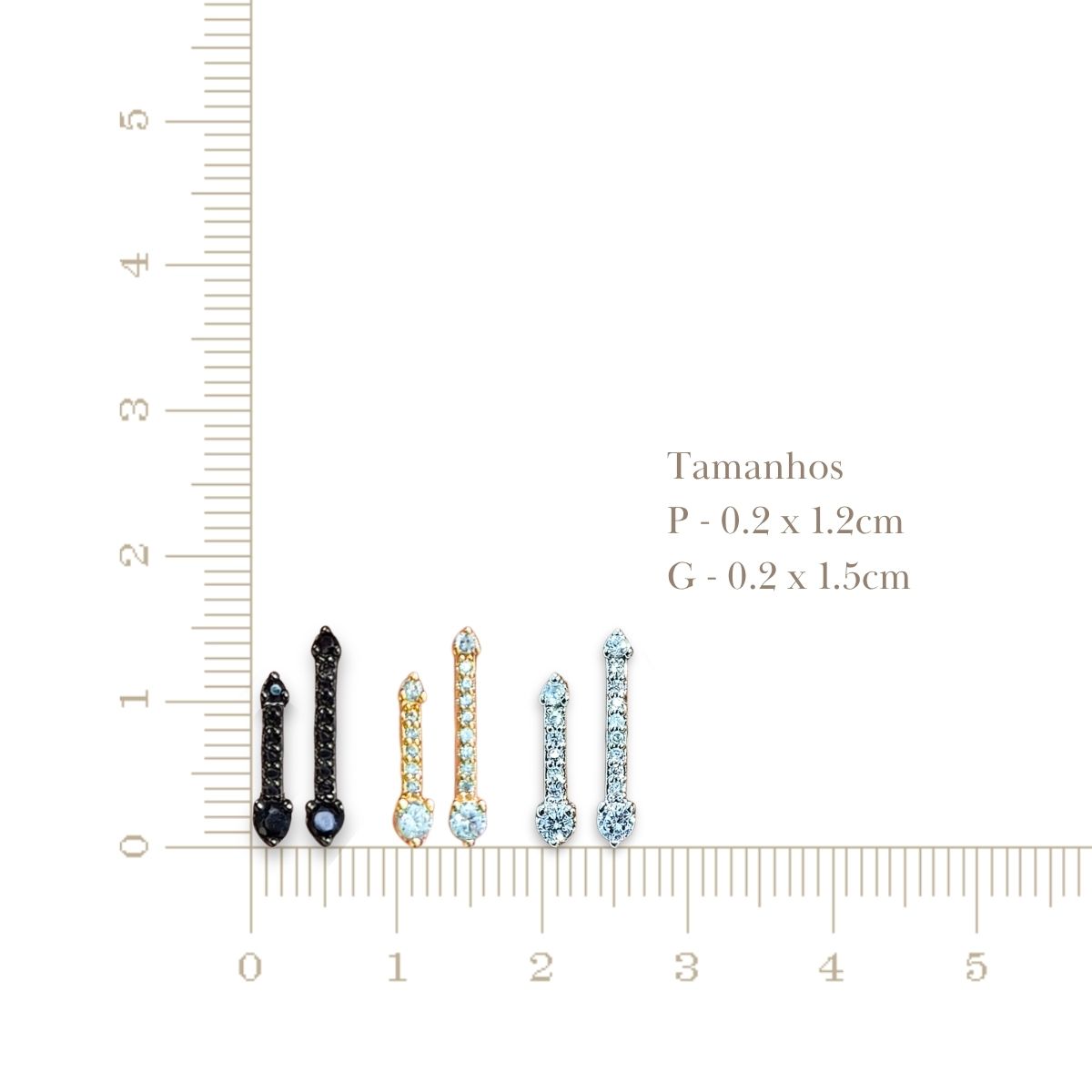 Cód. 005885/075 – Brincos Delicados para Primeiro e Segundo Furo em Formato de Setas com Cravação em Zircônias em Banho de Ródio Negro – Tamanhos: P 0.2 x 1.2cm | G 0.2 x 1.5cm