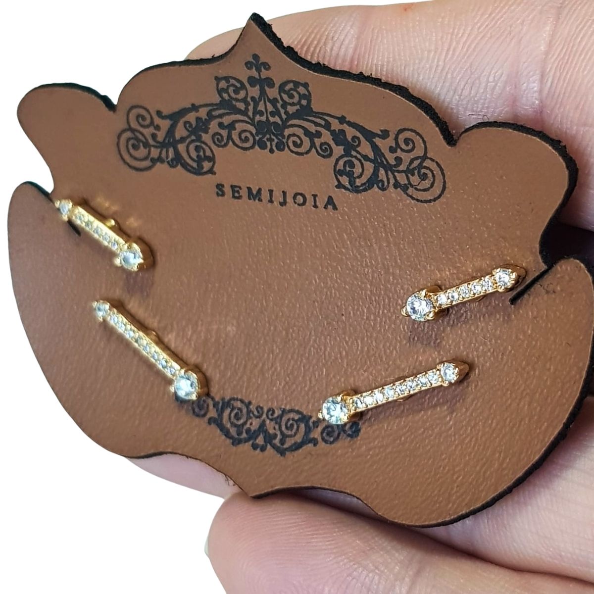 Brincos Delicados para Primeiro e Segundo Furo em Formato de Setas com Cravação em Zircônias em Banho de Ouro, Prata 925 ou Ródio Negro