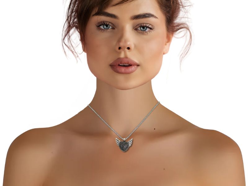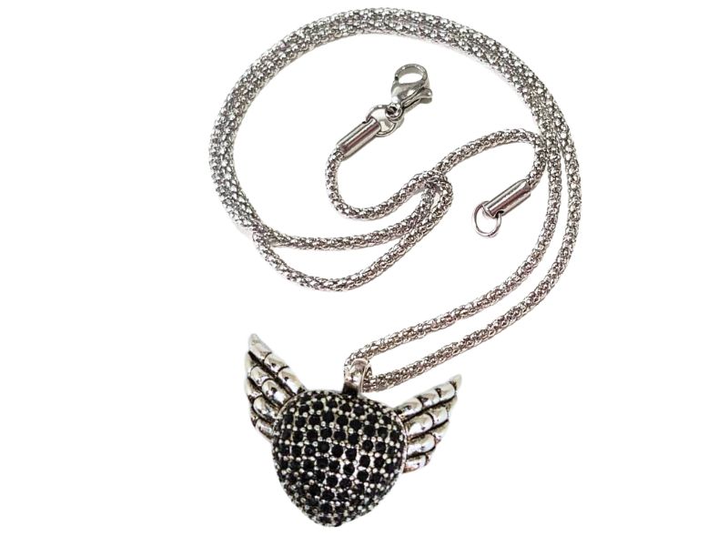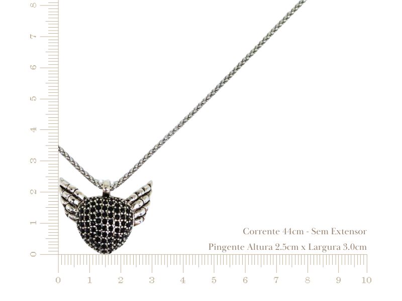 Cód. 005103/030 – Colar Coração Alado Cravejado de Zircônias Ônix em Banho de Prata Envelhecida