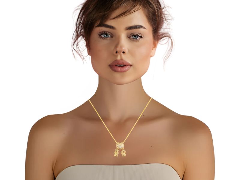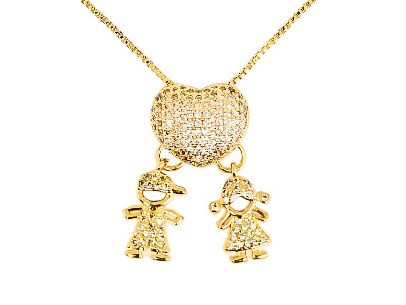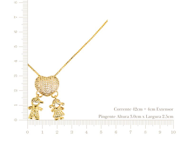 Cód. 004647/030 – Colar Filho e Filha com Pingente de Coração Cravejados de Zircônias Transparentes em Banho de Ouro Amarelo