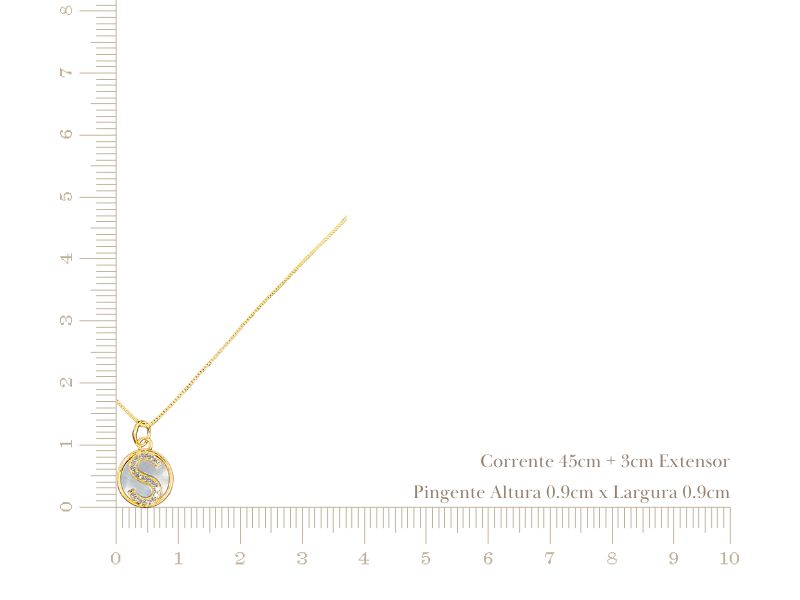 Tamanhos: Corrente 1mm Espessura: 45cm + 3cm de Extensor) / Pingente: 0.9cm Altura x 0.9cm Largura