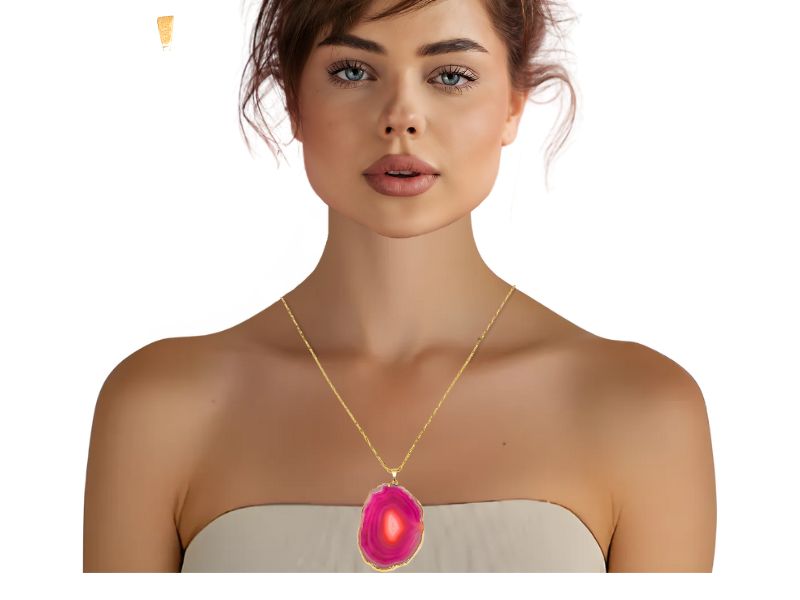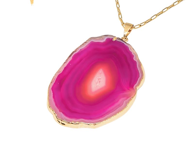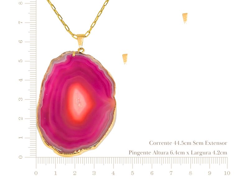 Cód. 004442/086 – Colar Pedra Natural Ágatha Rosa Pink em Banho de Ouro Amarelo