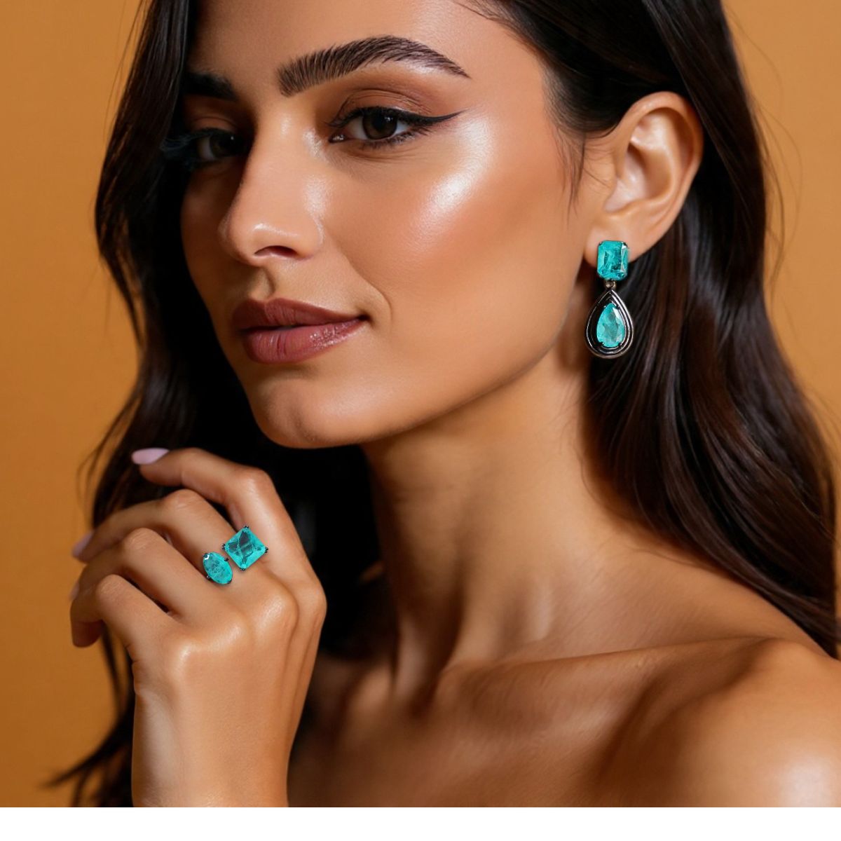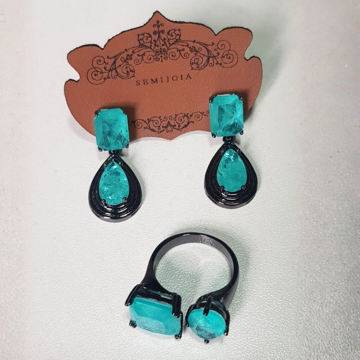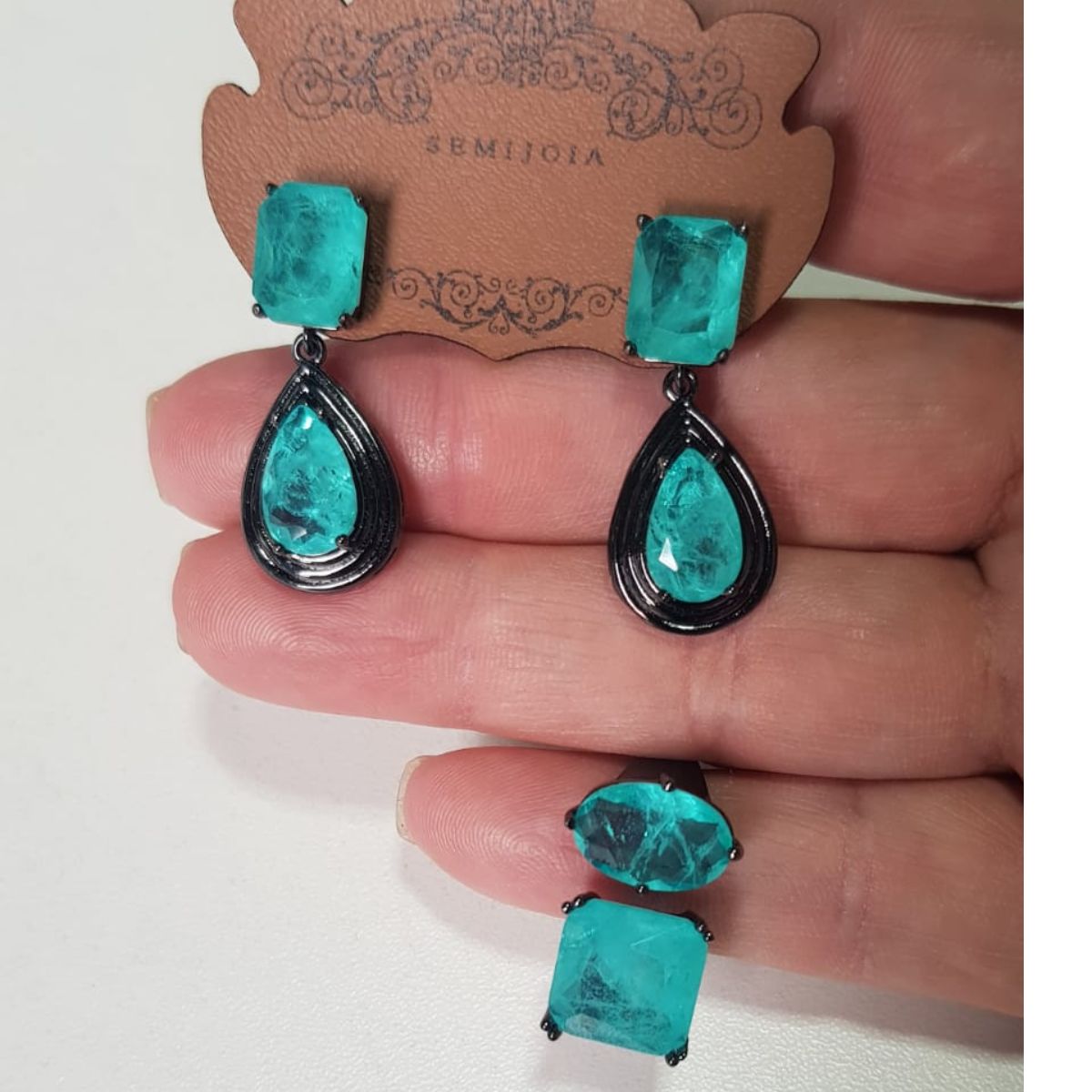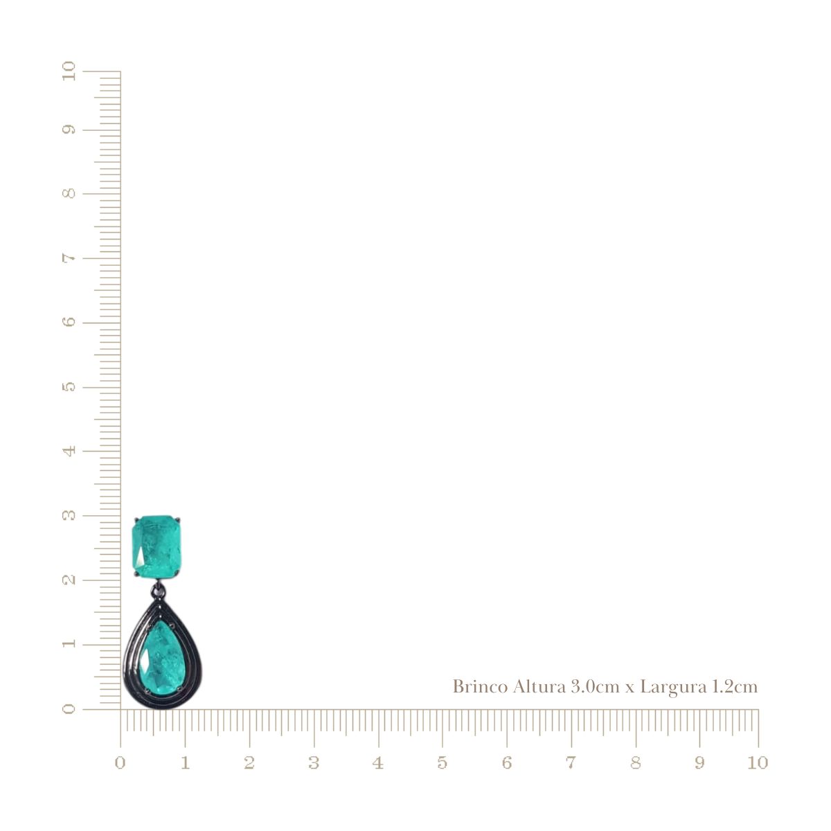 Cód. 005823/075 – Brinco Retângulo e Gota Turmalina Fusion Premium em Banho de Ródio Negro