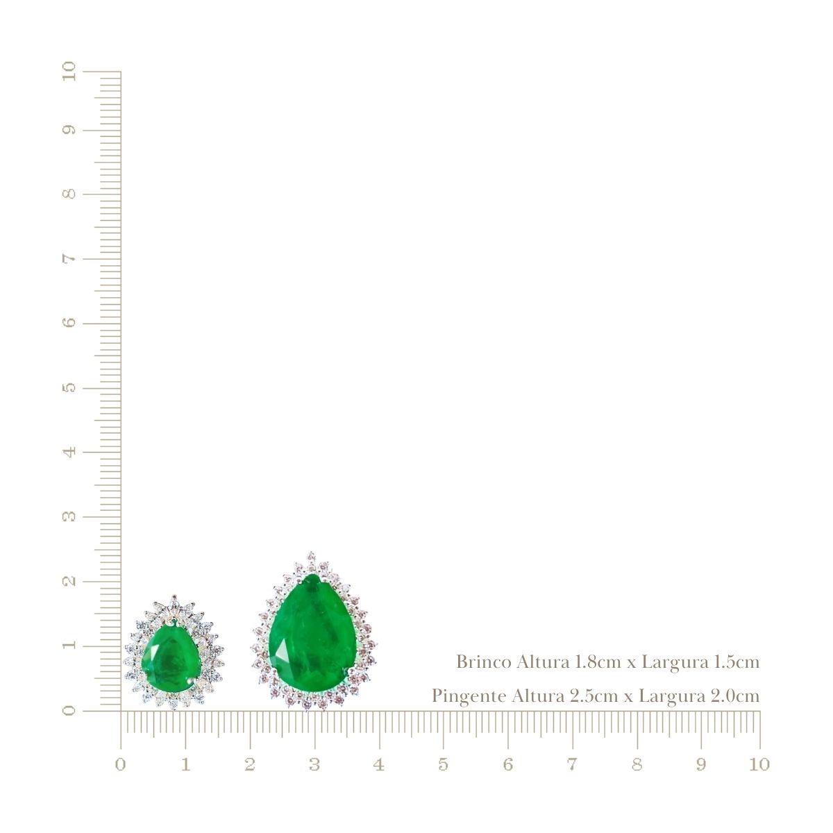 Cód. 005577/030 – Conjunto Colar e Brincos Gota Esmeralda Fusion Premium e Navetes de Zircônia Cristal em Banho de Prata 925