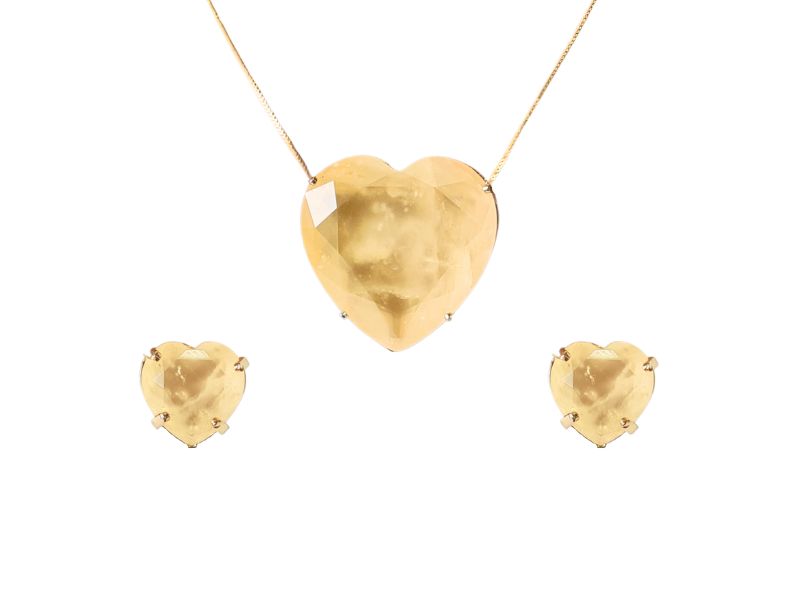 Cód. 005263/115 – Conjunto Coração Cornalina Tangerina Fusion em Banho de Ouro Amarelo