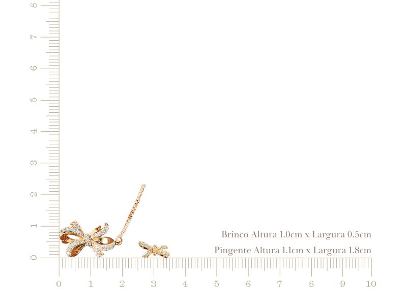 Cód. 004342-075 – Conjunto Laço Cravejado de Zircônias Transparentes em Banho de Ouro Amarelo