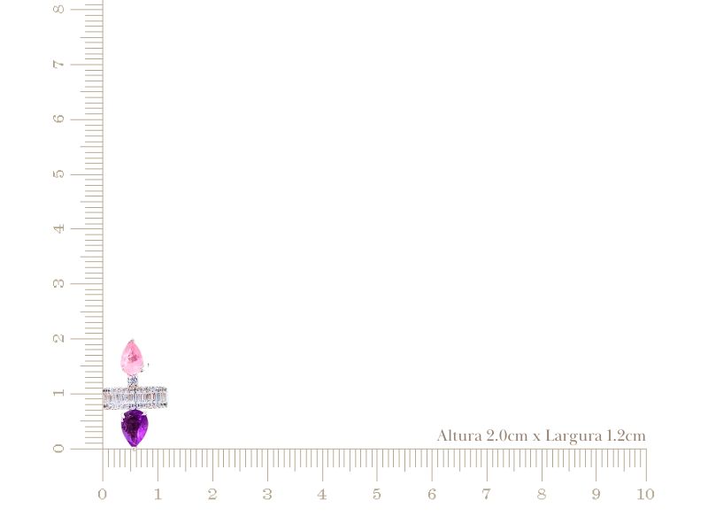 Ref. 003555/049 – Piercing Fake Unilateral 2 Gotas Ametista e Turmalina Rosa Light Fusion Premium Cravejado de Baguetes e Zircônias Transparentes em Banho de Prata 925